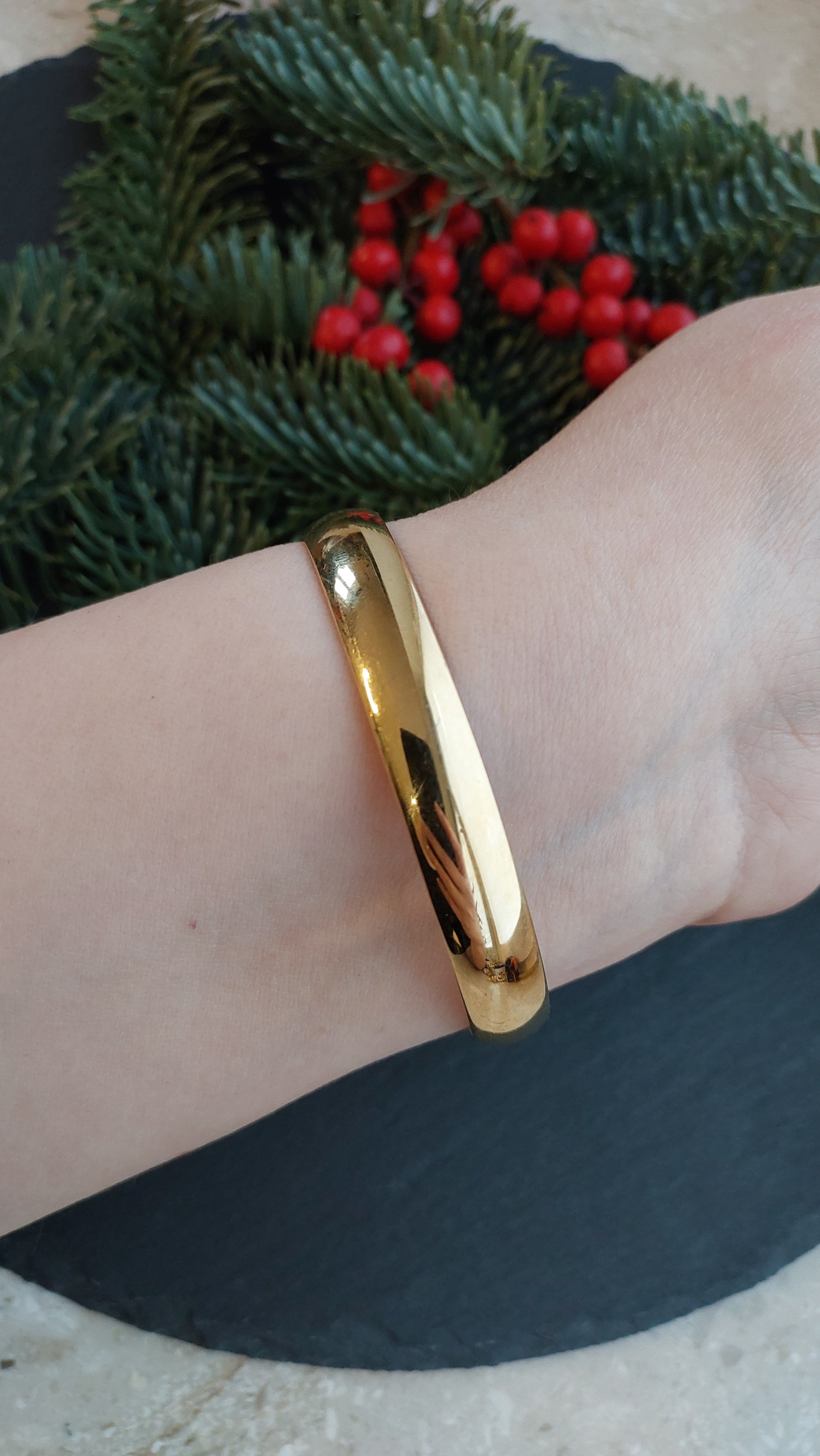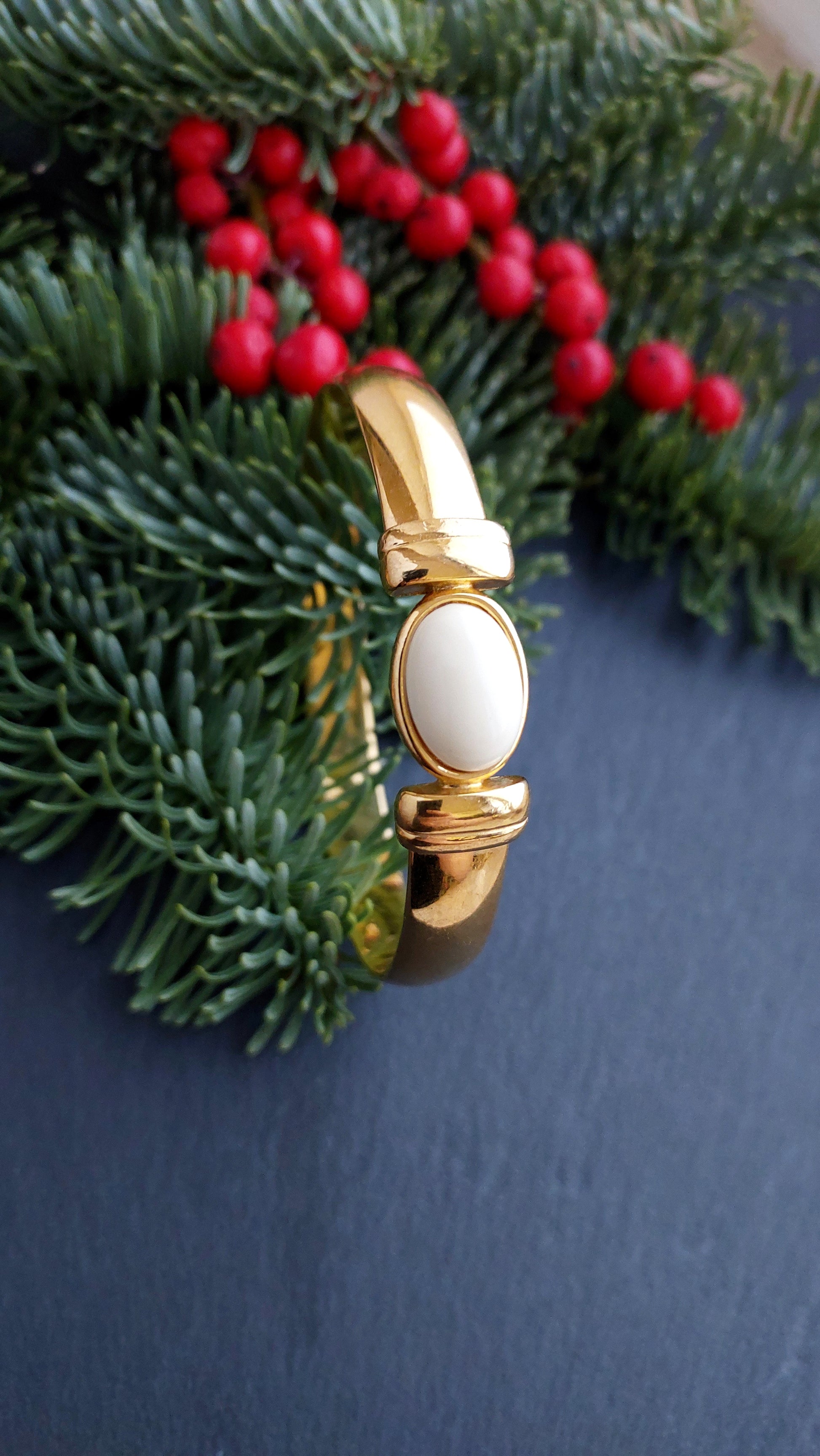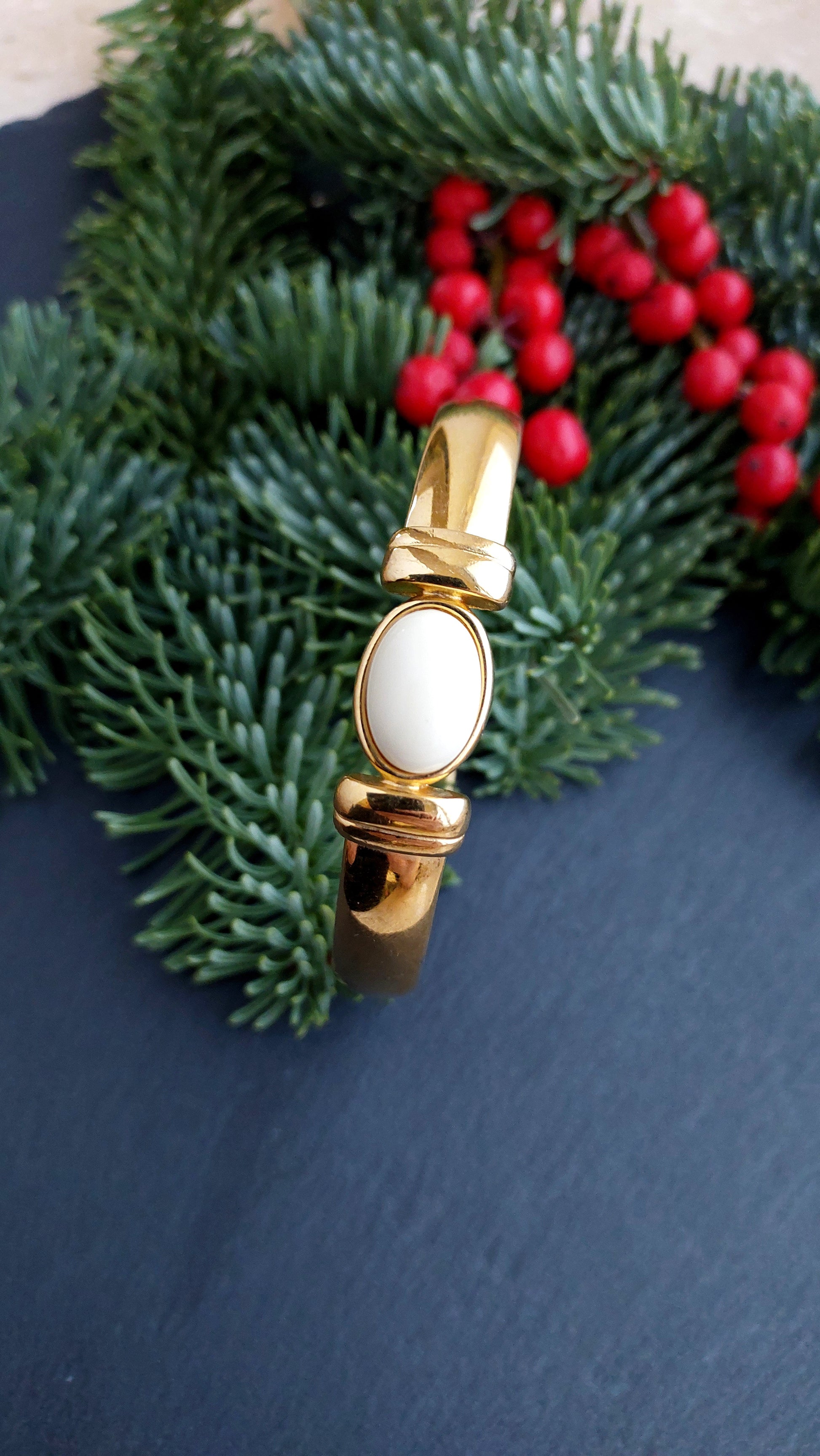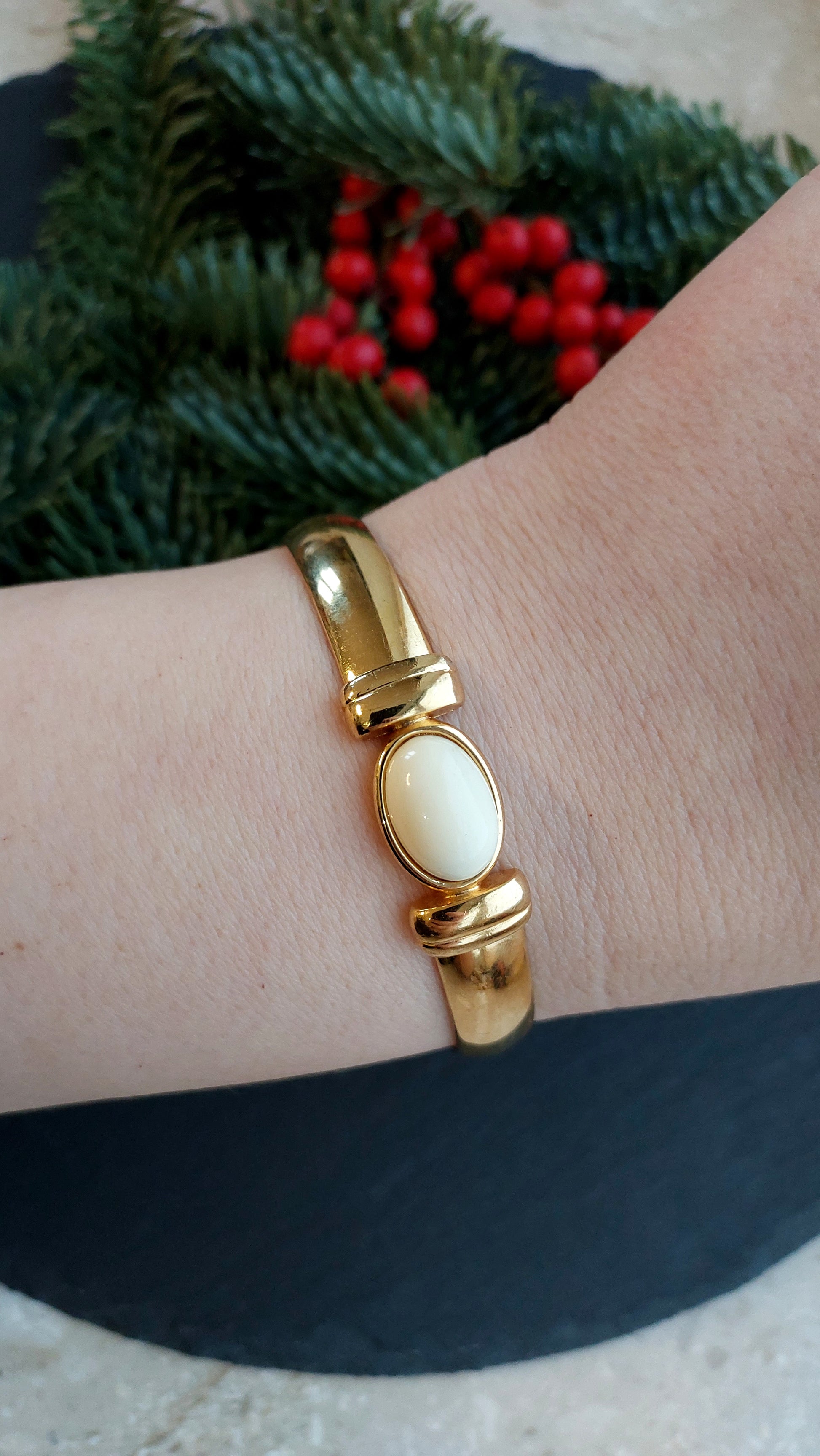 Bransoletka Monet z gładką, złocistą bazą i owalną kremową wstawką.