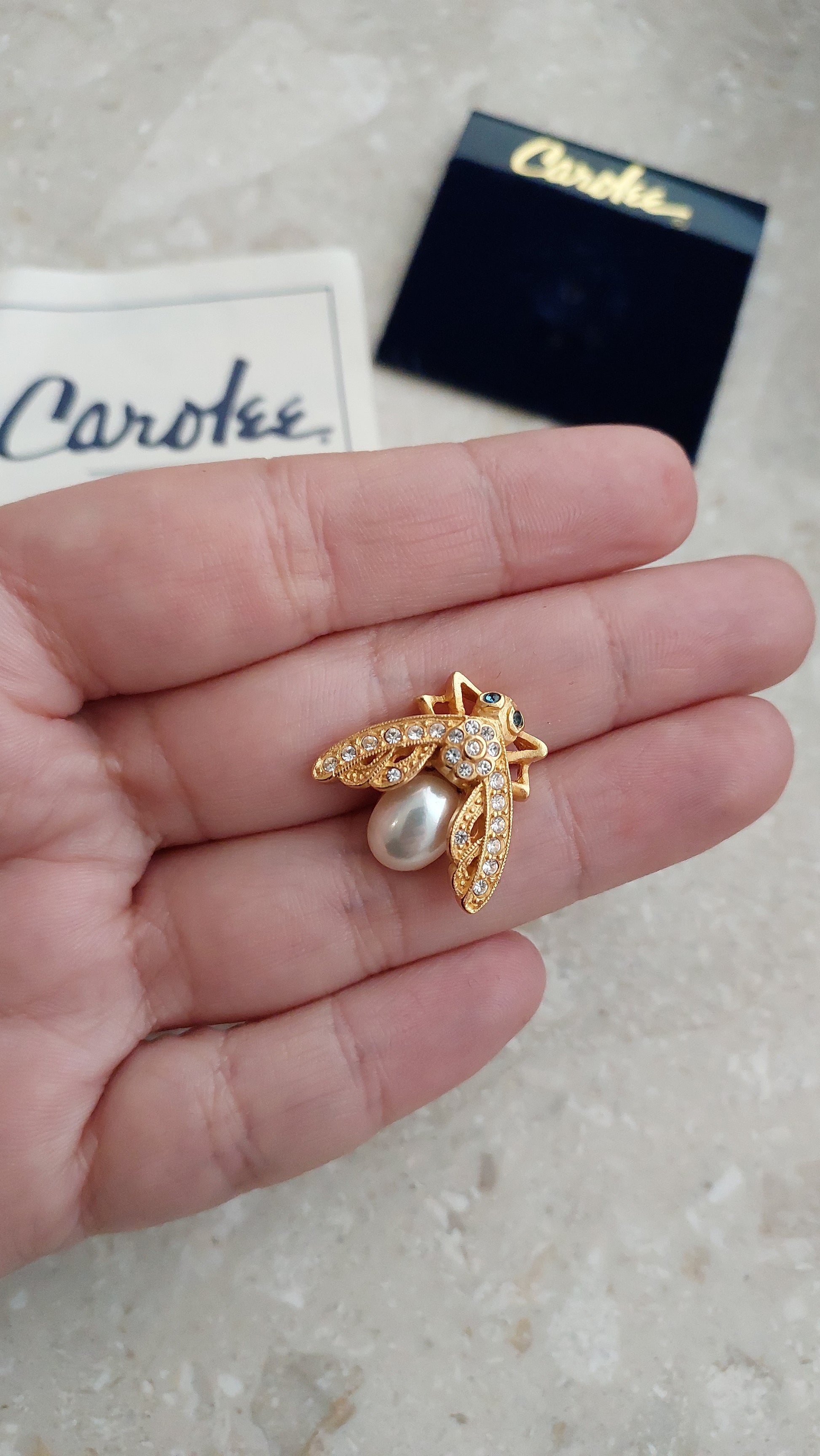 Urocza broszka Carolee z 1997 roku w kształcie pszczółki.
