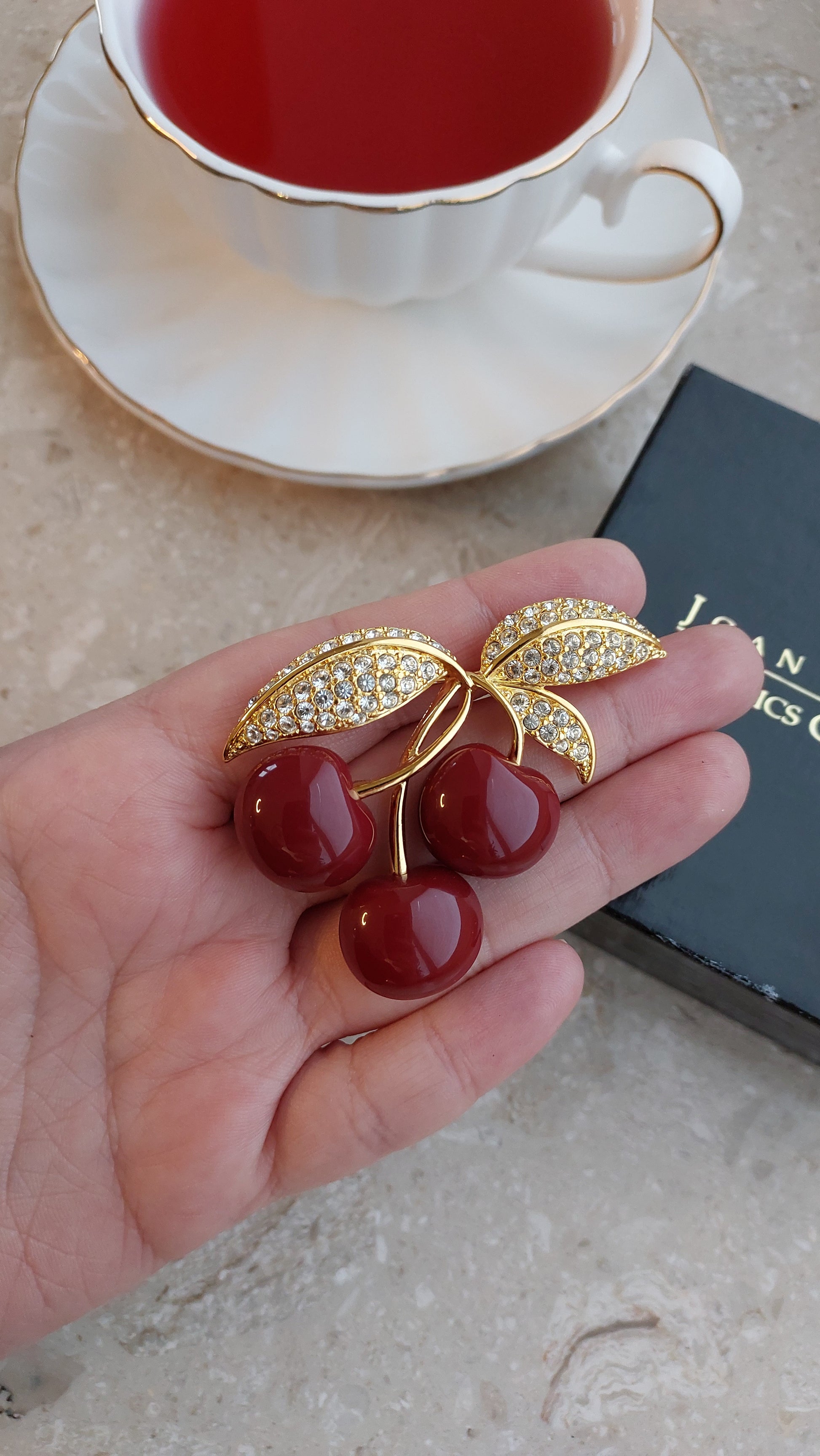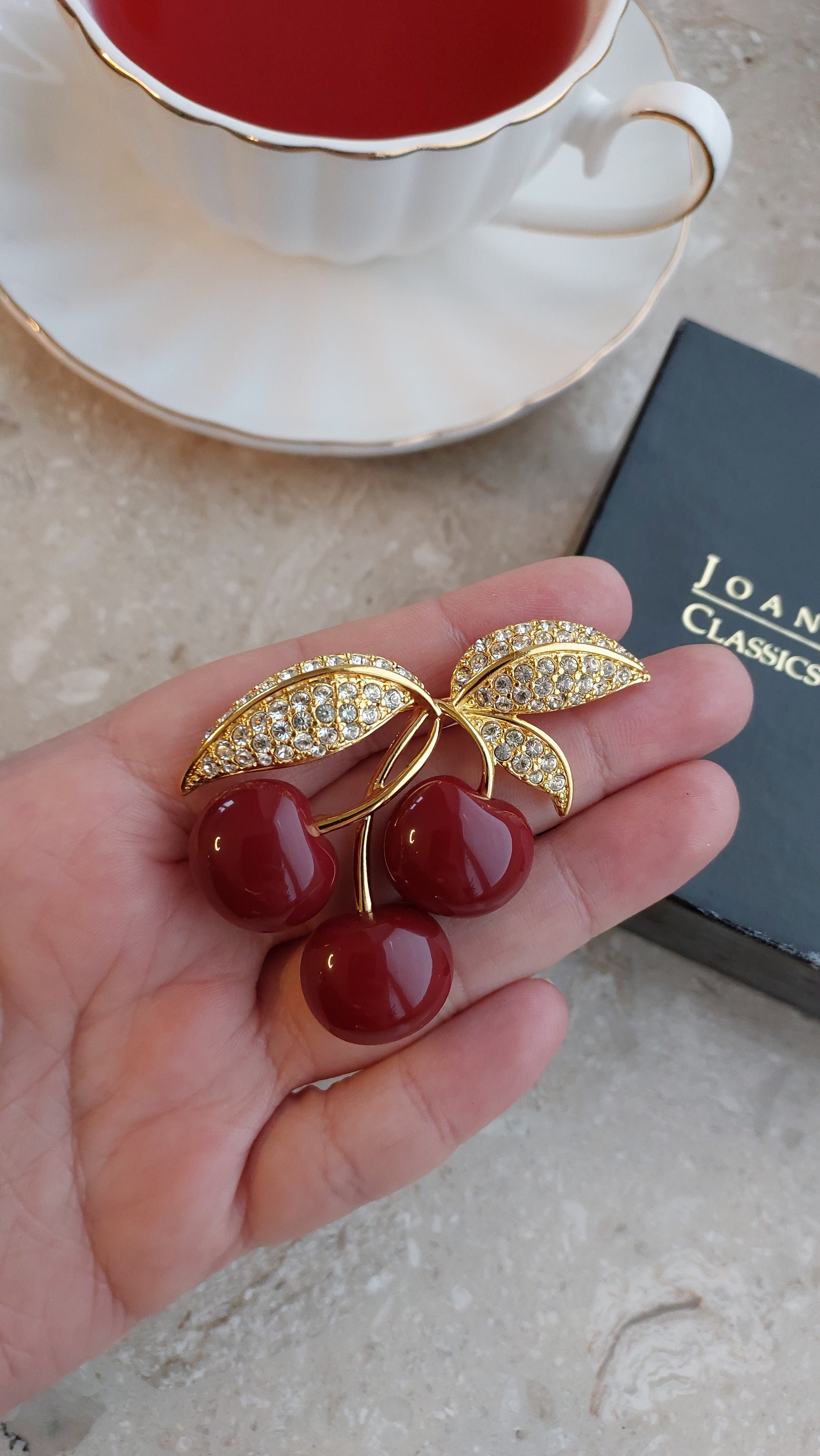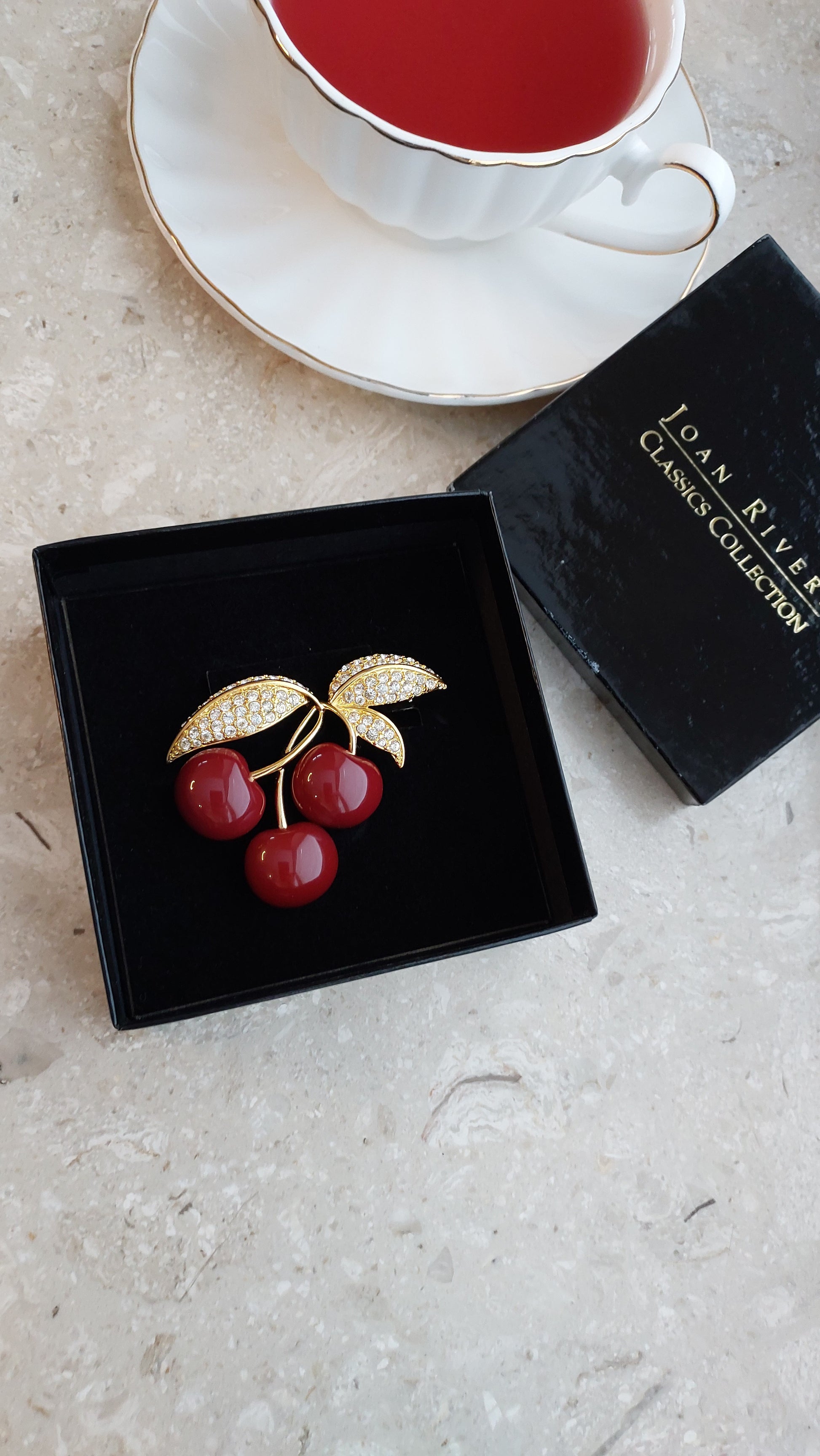 Broszka Joan Rivers w formie wiśni — wyrazista, lśniąca i bardzo efektowna.