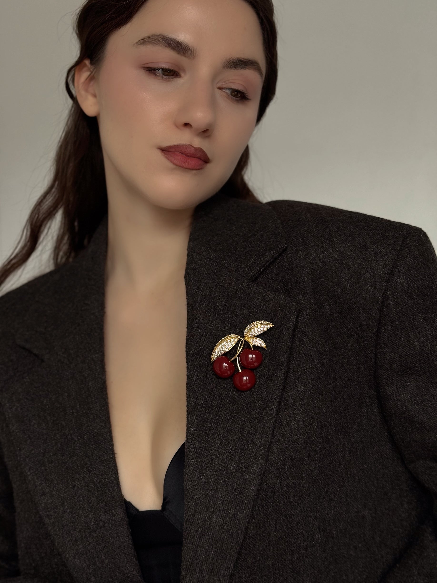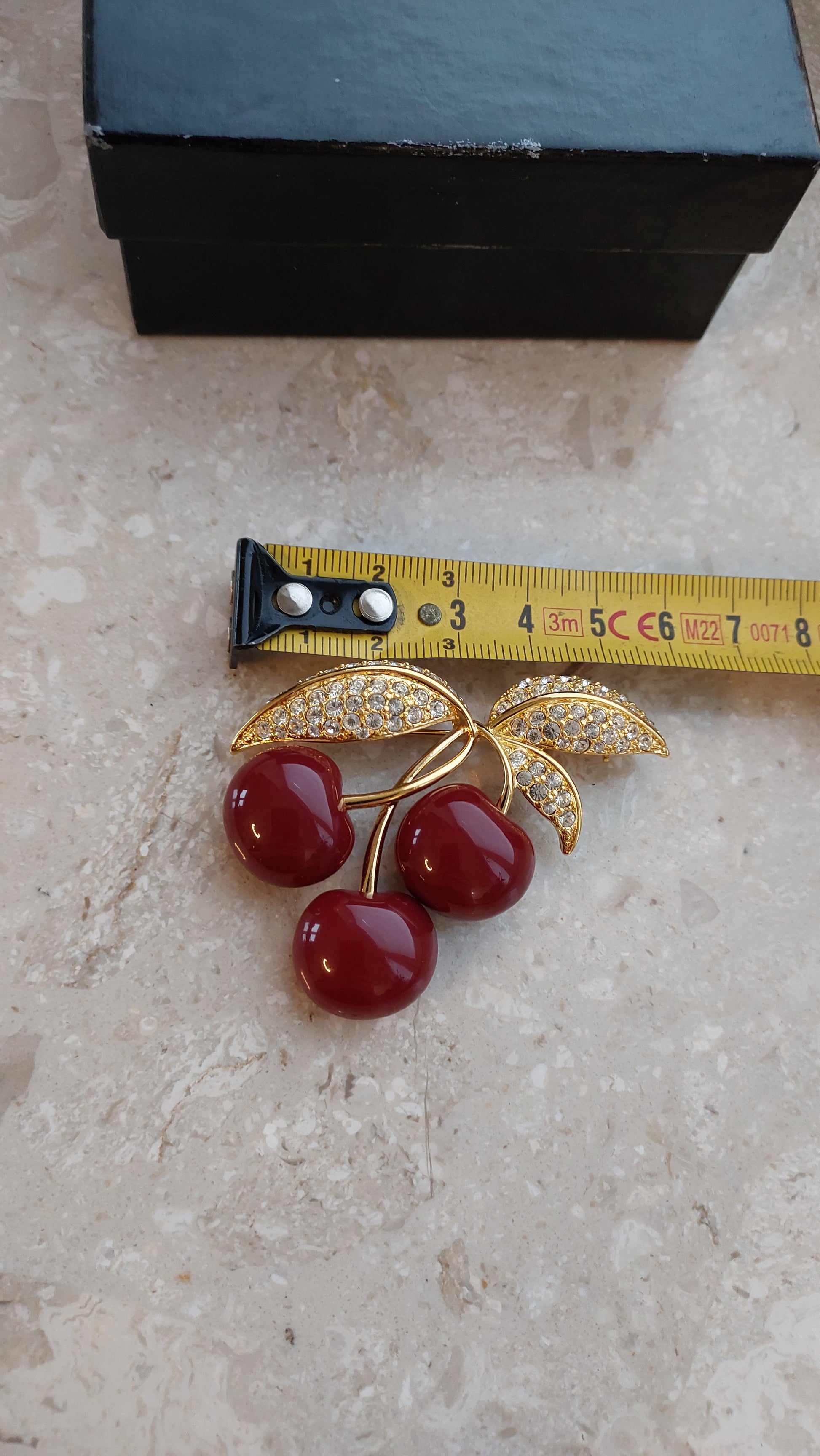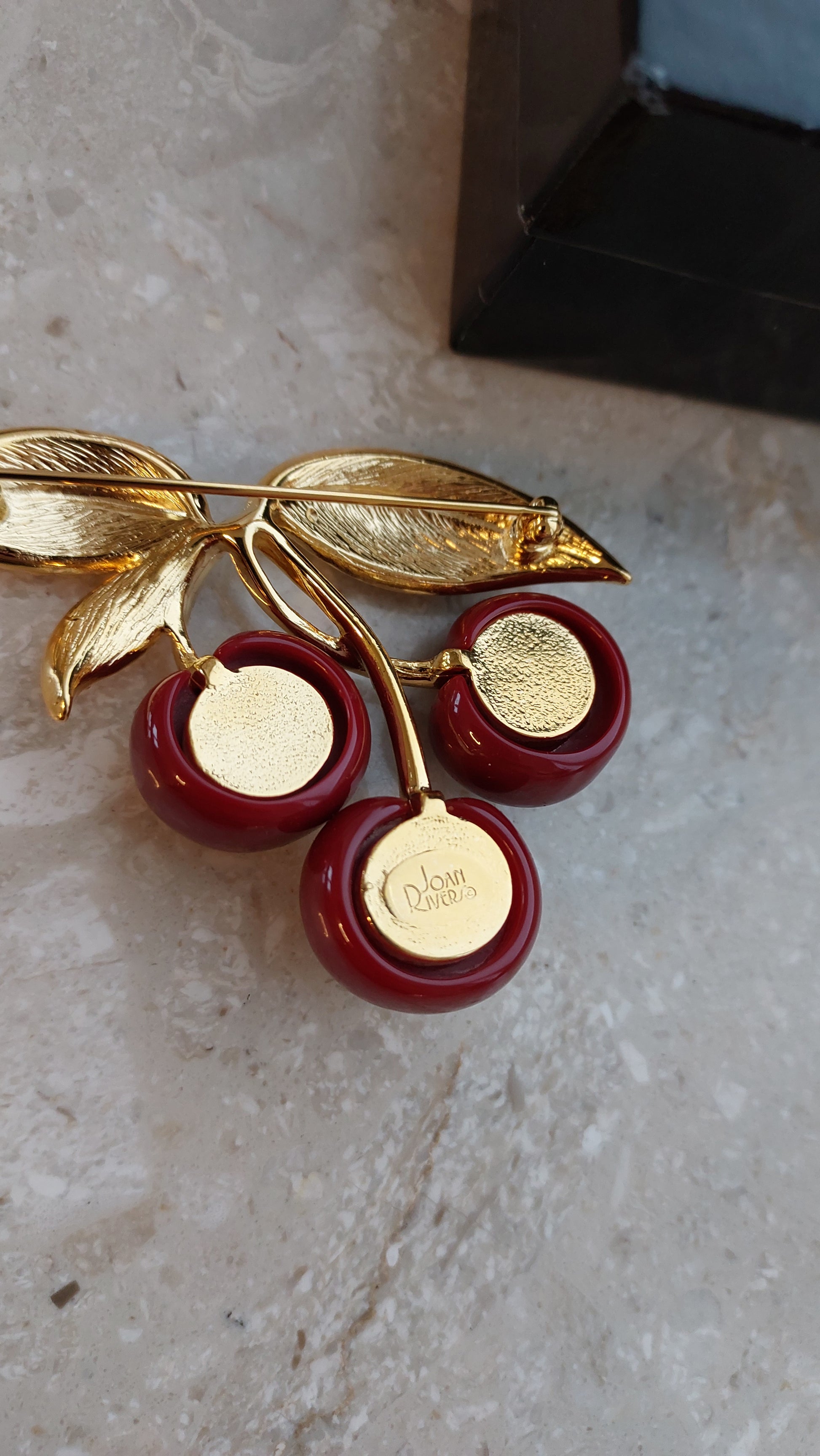 Broszka Joan Rivers w formie wiśni — wyrazista, lśniąca i bardzo efektowna.