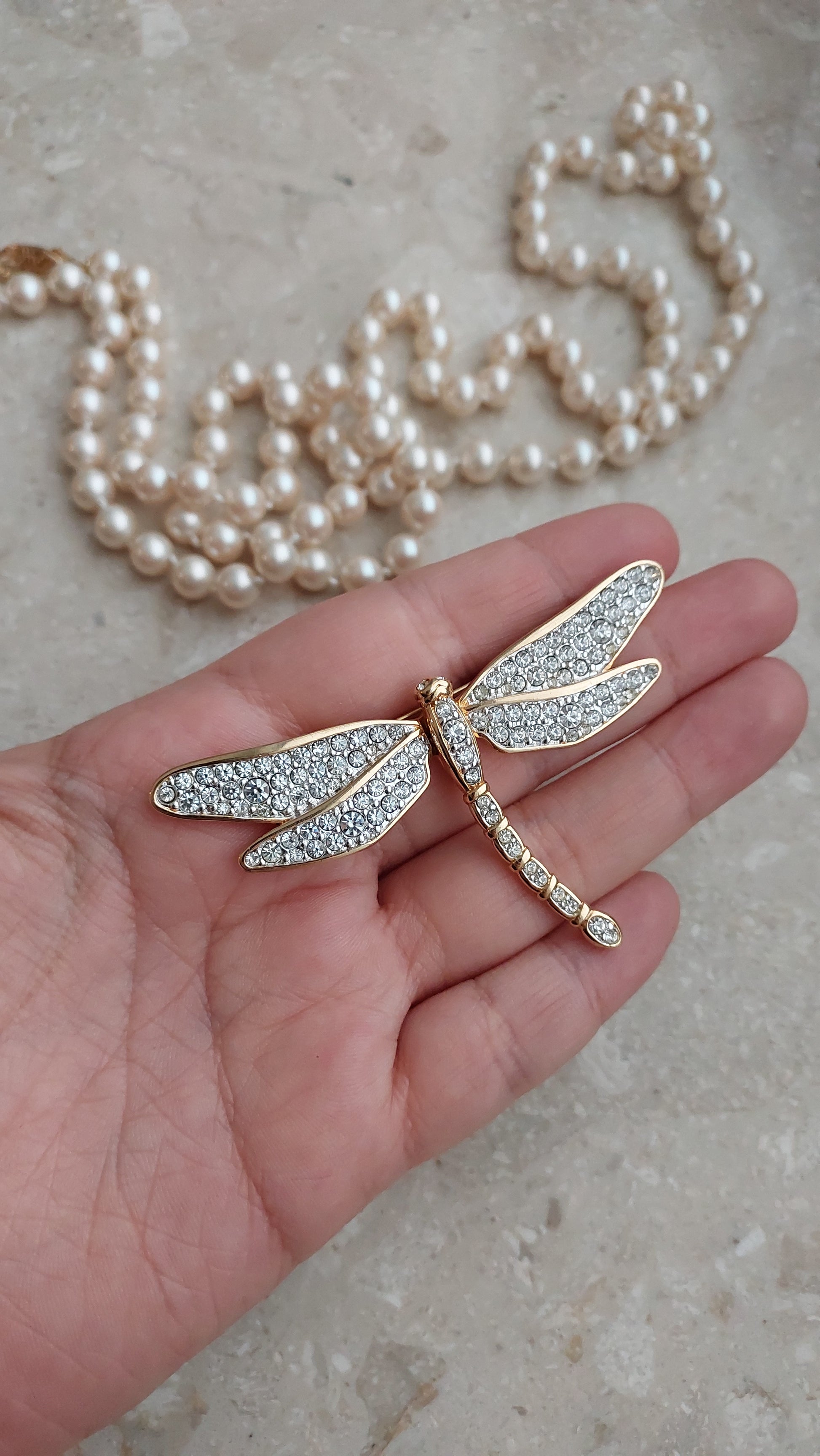 Broszka Swarovski w kształcie zmysłowej ważki.
