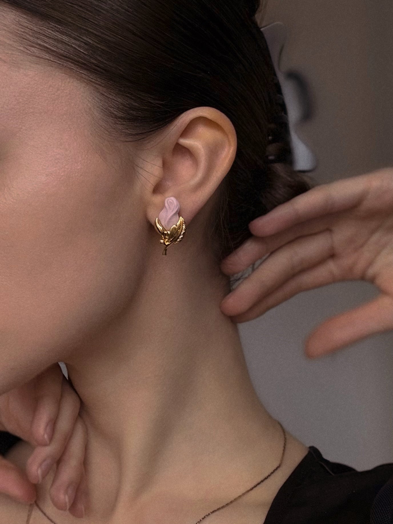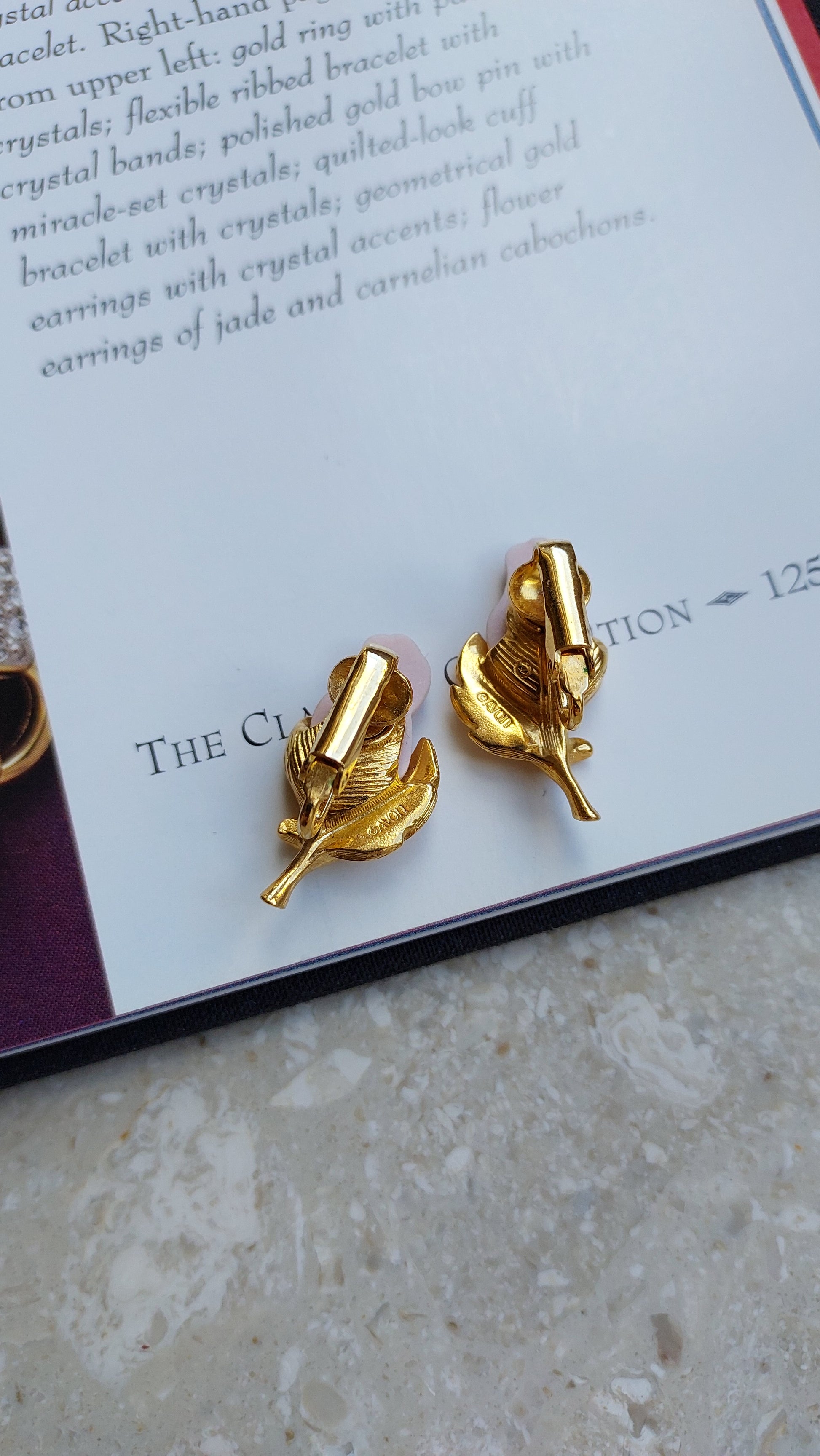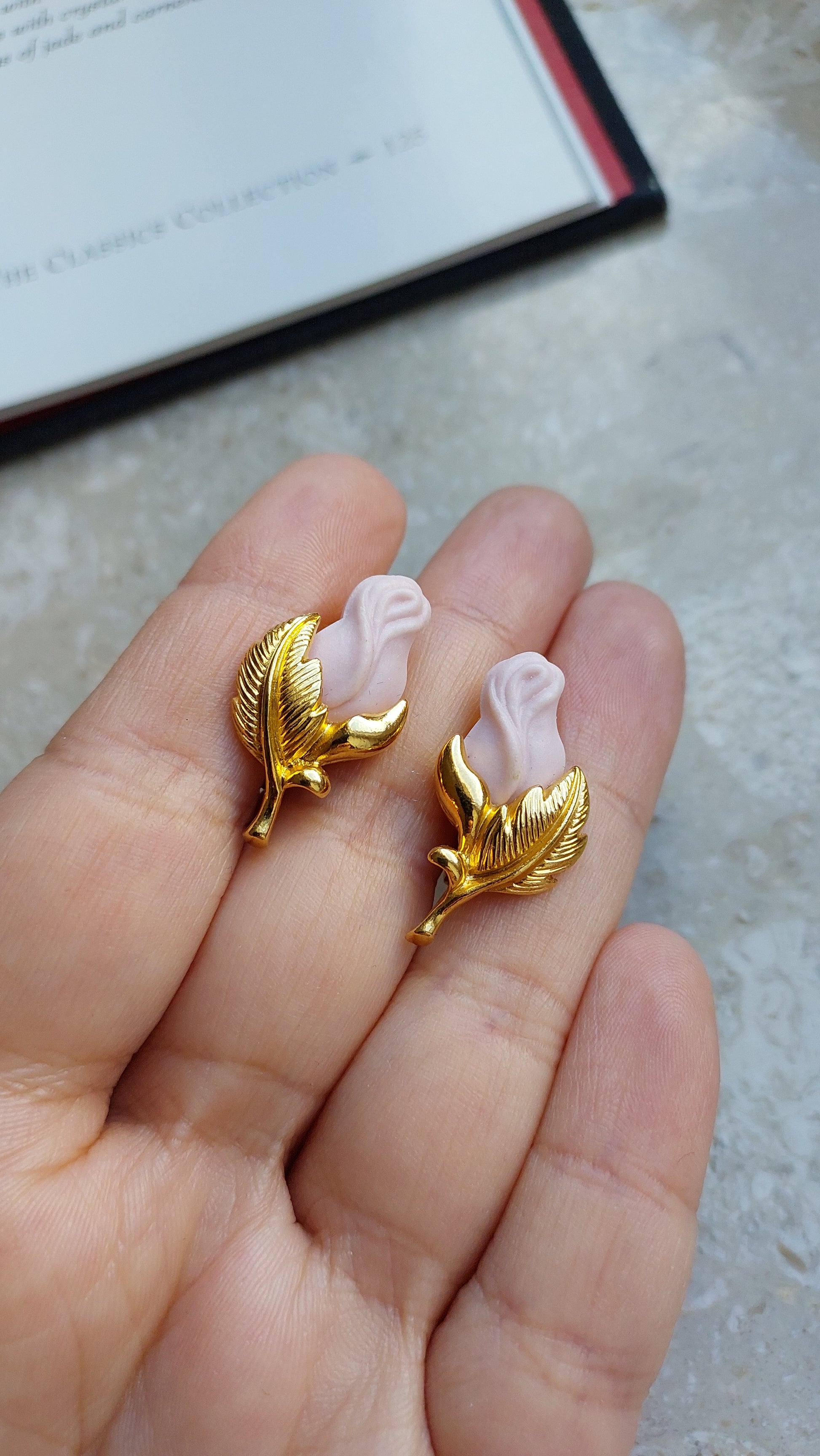 Klipsy vintage Avon( lata 90-te)o subtelnym, romantycznym designie. Każda klipsa ma formę delikatnej róży, której płatki wykonane są z jasnoróżowego akrylu, tworzącego efekt naturalnego kamienia.