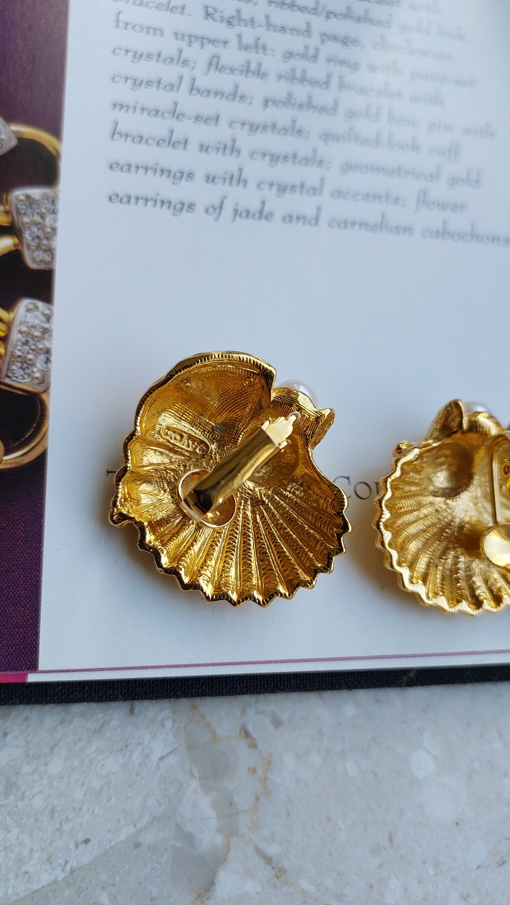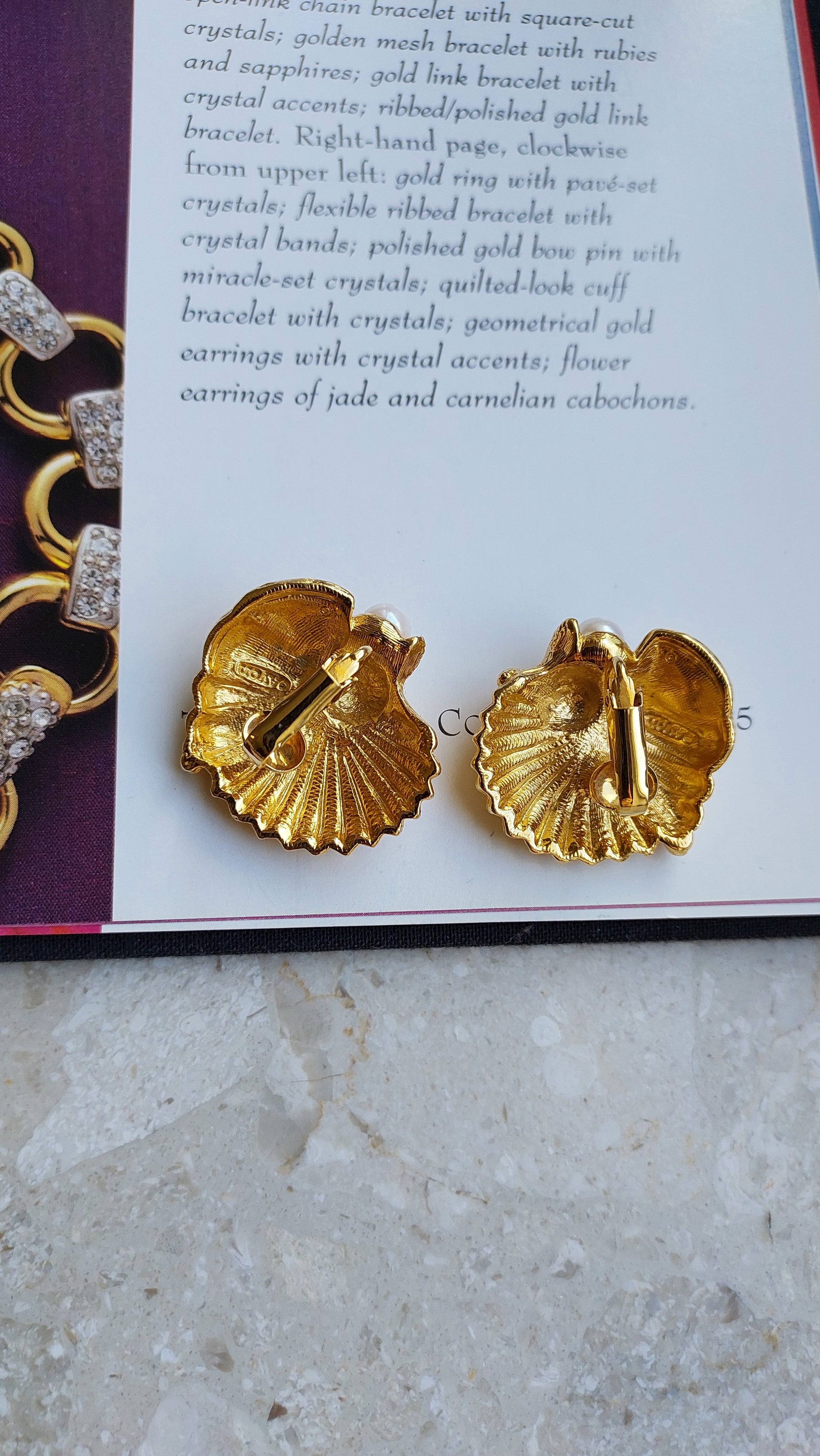 Klipsy vintage Avon o motywie morskim, pokryte złoceniem.