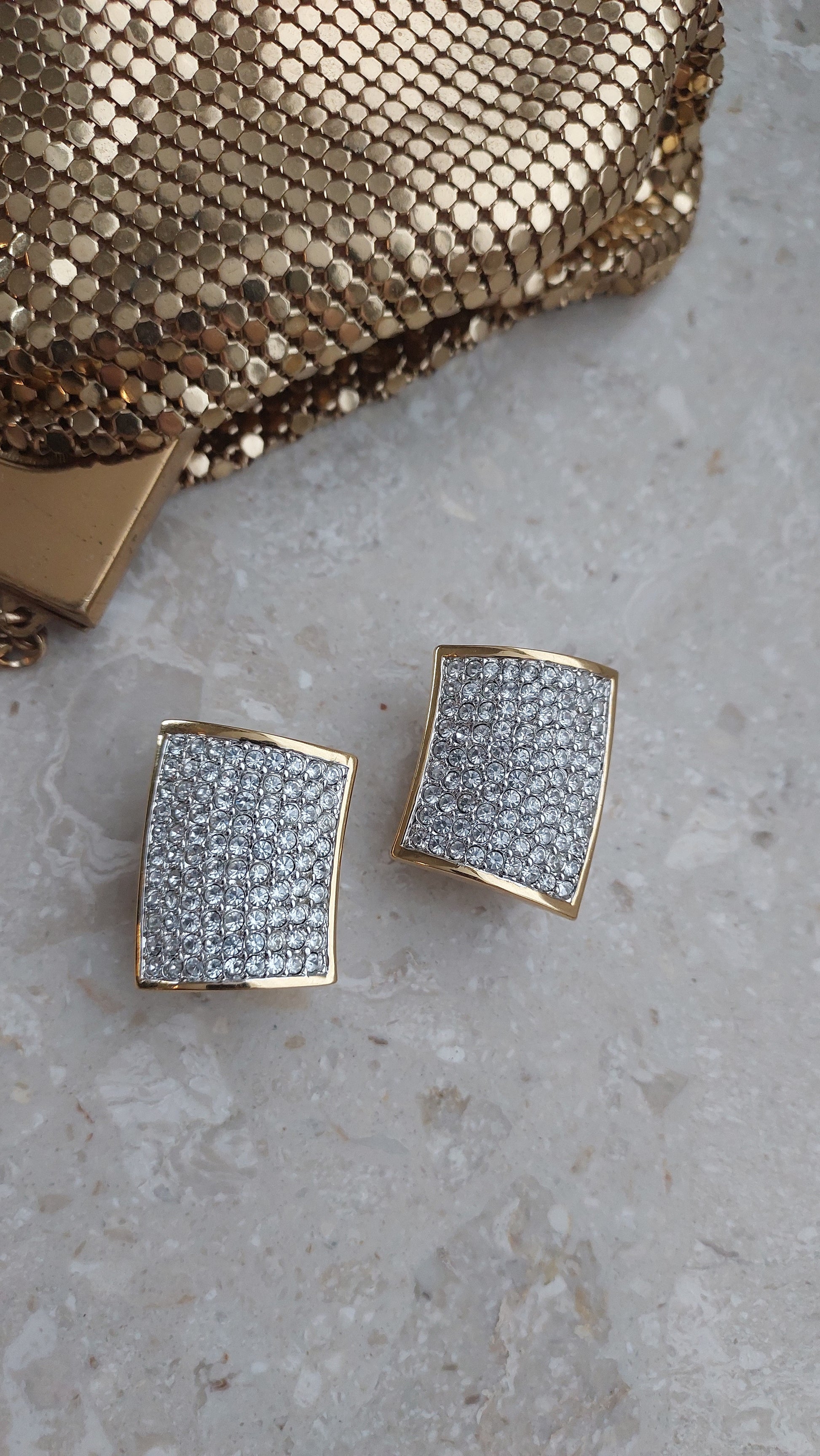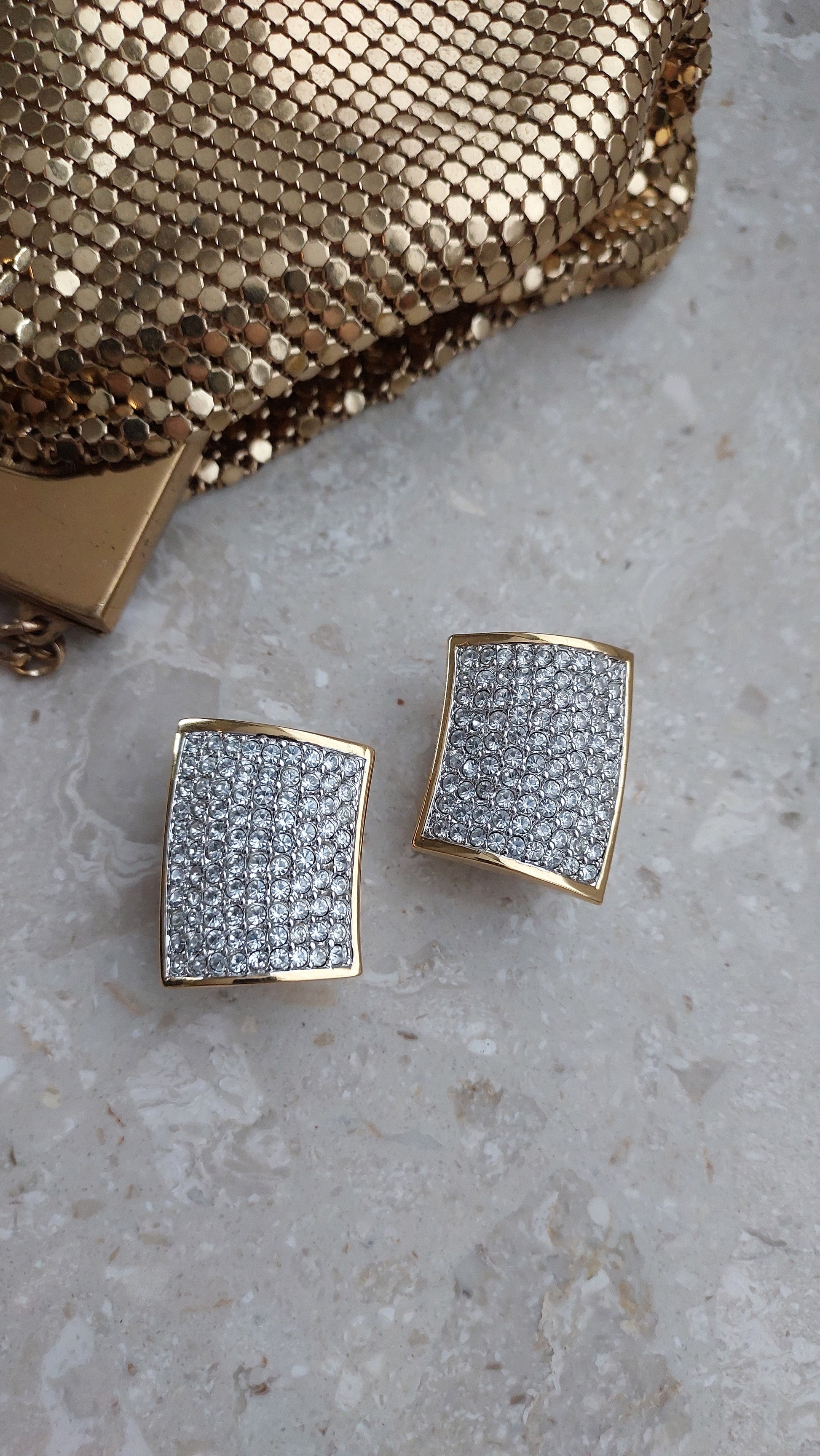 Klipsy Swarovski o wyrazistej, geometrycznej formie i eleganckim charakterze. Powierzchnia została w całości inkrustowana drobnymi, przezroczystymi kryształami, gęsto ułożonymi w efektownym, lśniącym pavé. Ciepła, złocista oprawa podkreśla chłodny blask kryształów i nadaje biżuterii efektowny, prestiżowy wygląd.