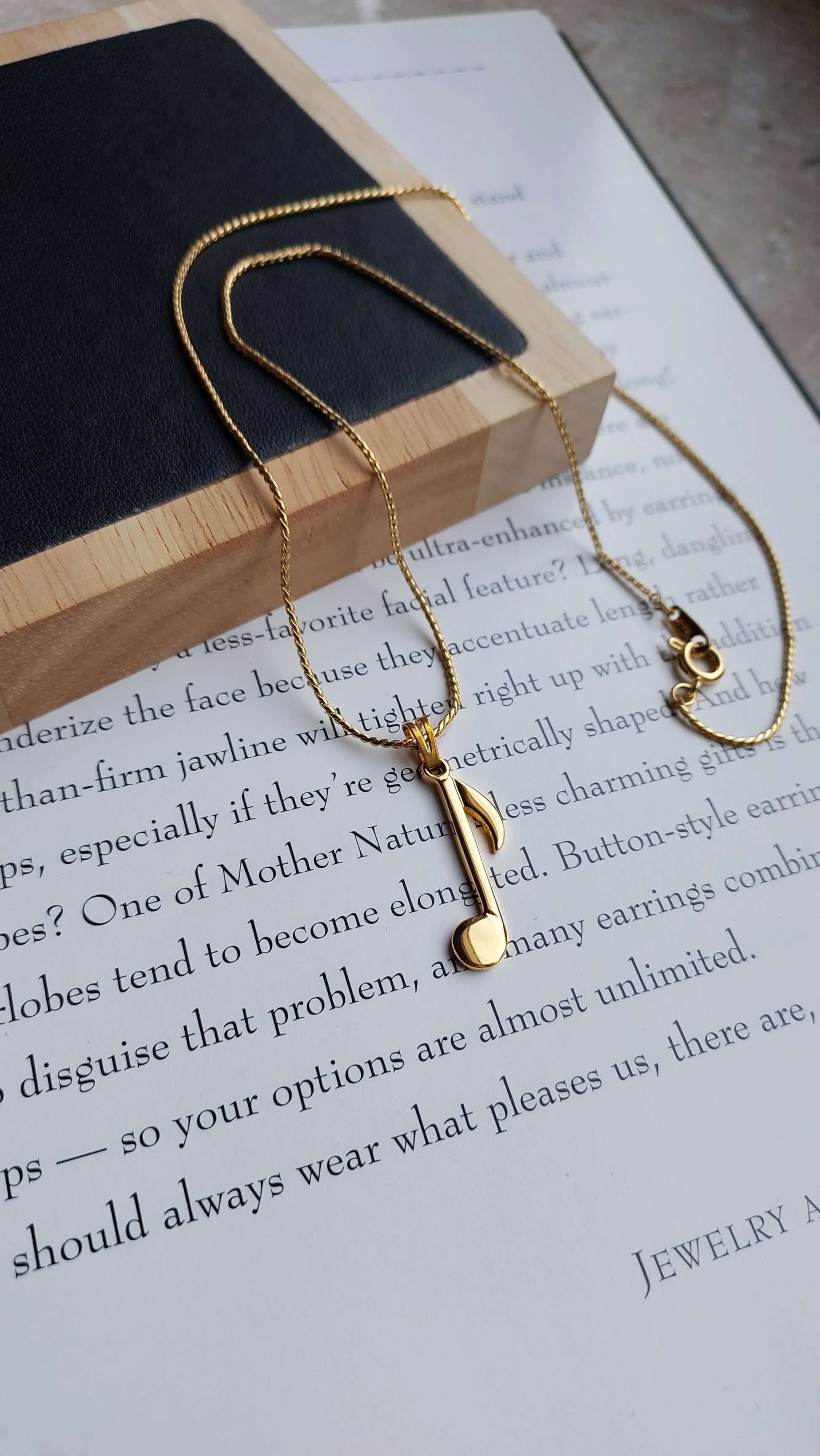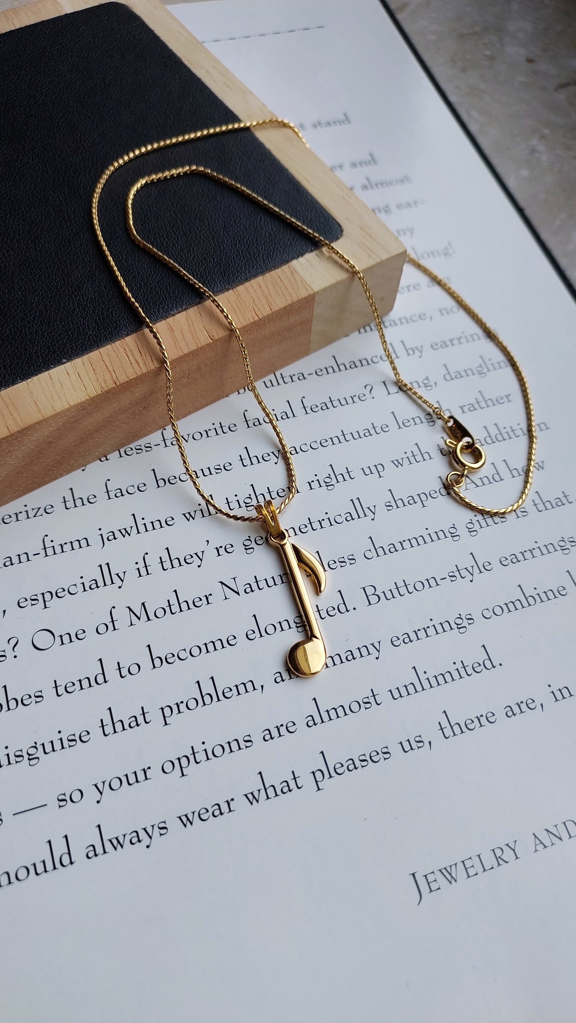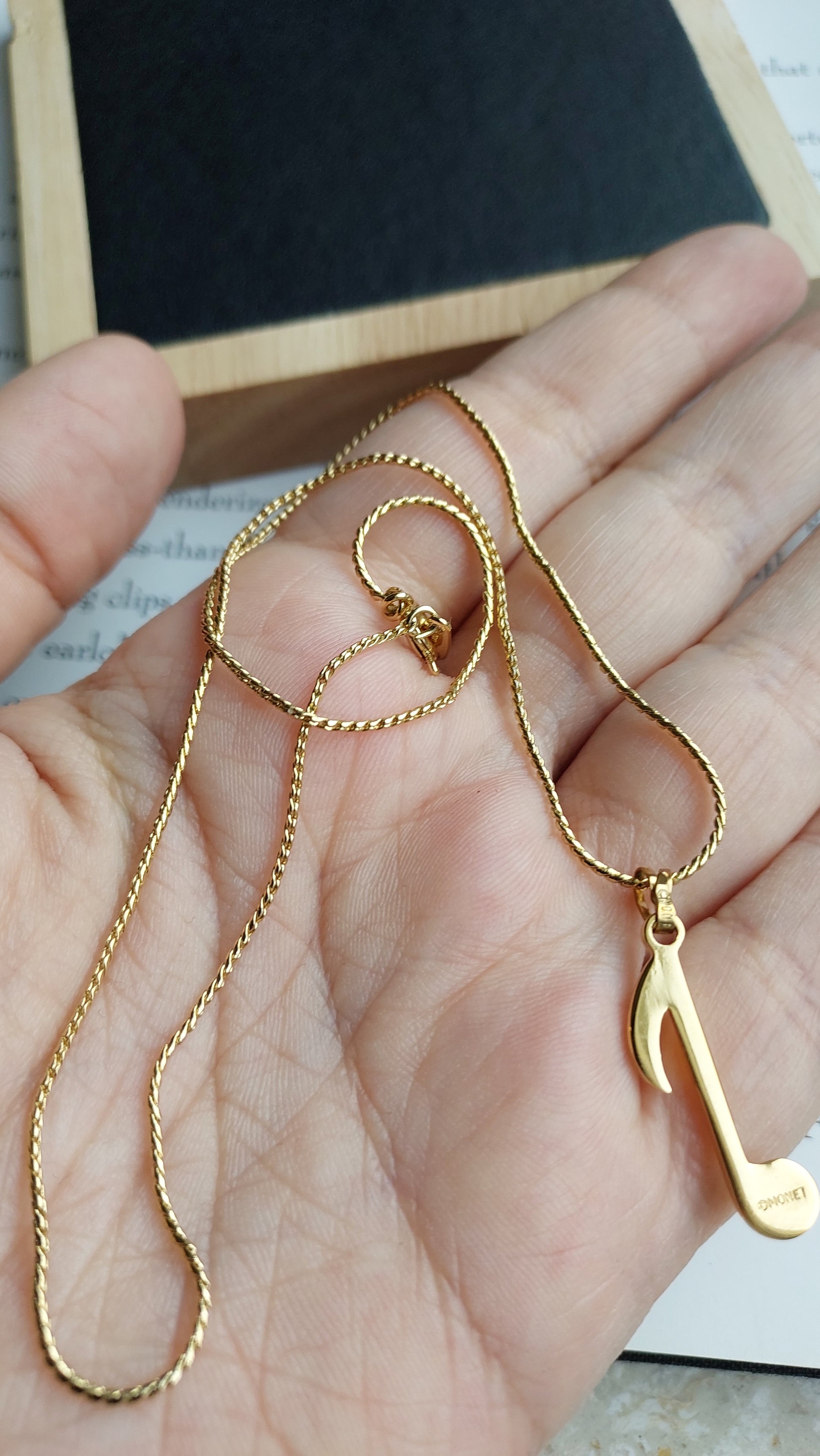 Łańcuszek z finezyjną zawieszką Monet w kształcie nuty — subtelny i elegancki akcent w stylizacji.