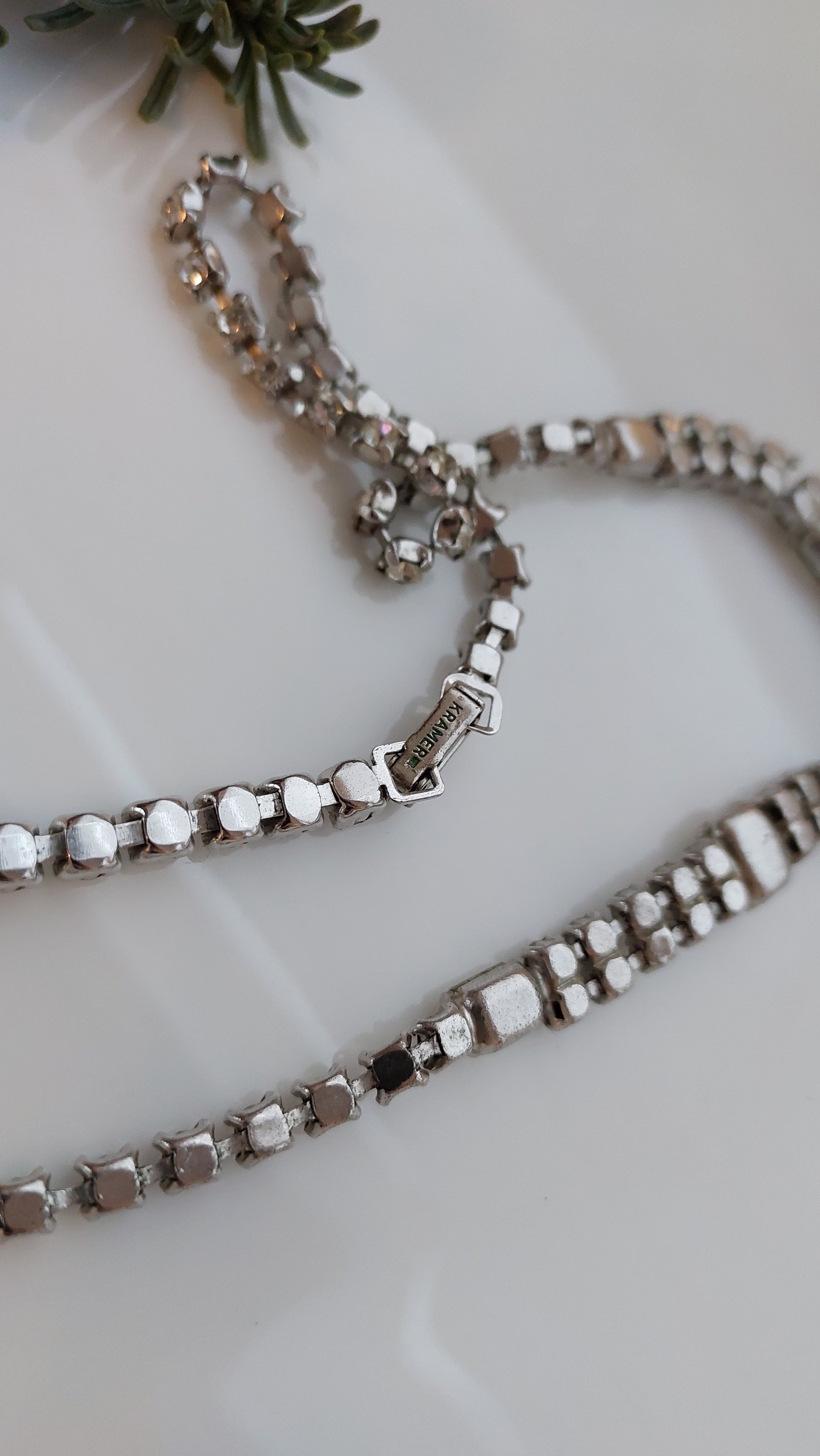 Firma Kramer została założona w Nowym Jorku w latach 40. XX wieku i szybko stała się jednym z najbardziej rozpoznawalnych nazwisk w świecie amerykańskiej biżuterii vintage. Marka zasłynęła z doskonałej jakości wykonania, precyzyjnego osadzania kryształów oraz częstego wykorzystania kamieni pochodzenia austriackiego. Biżuteria Kramer była tworzona w duchu ówczesnej wysokiej mody jubilerskiej i dziś jest szczególnie ceniona przez kolekcjonerów za wyrazisty design, intensywny blask oraz atmosferę prawdziwego „old Hollywood glamour”.