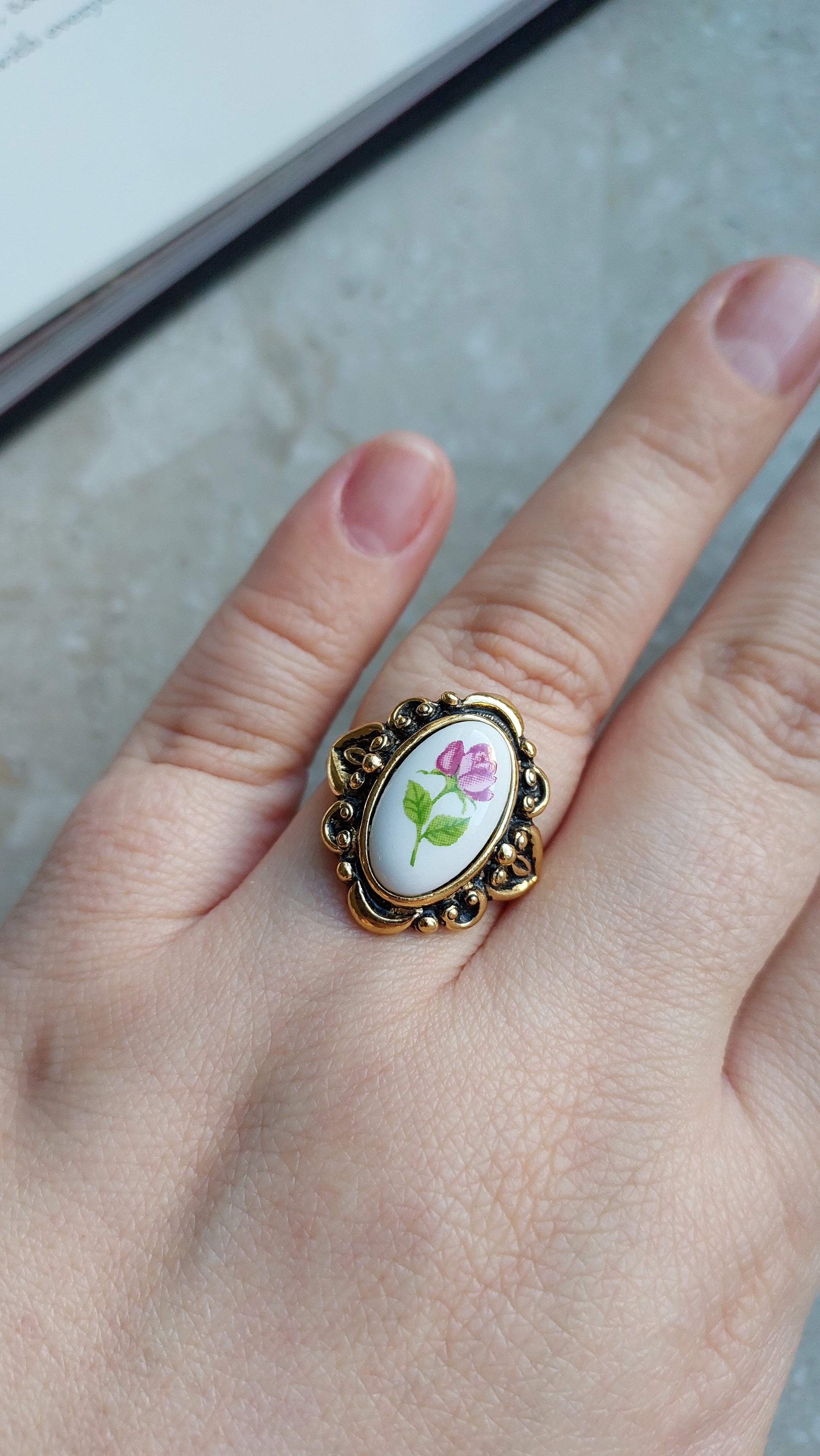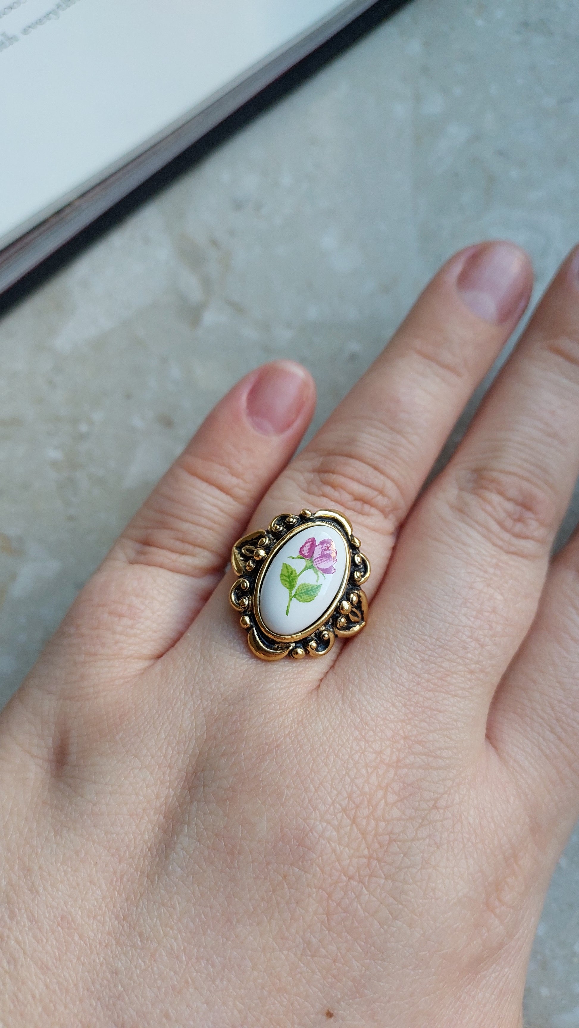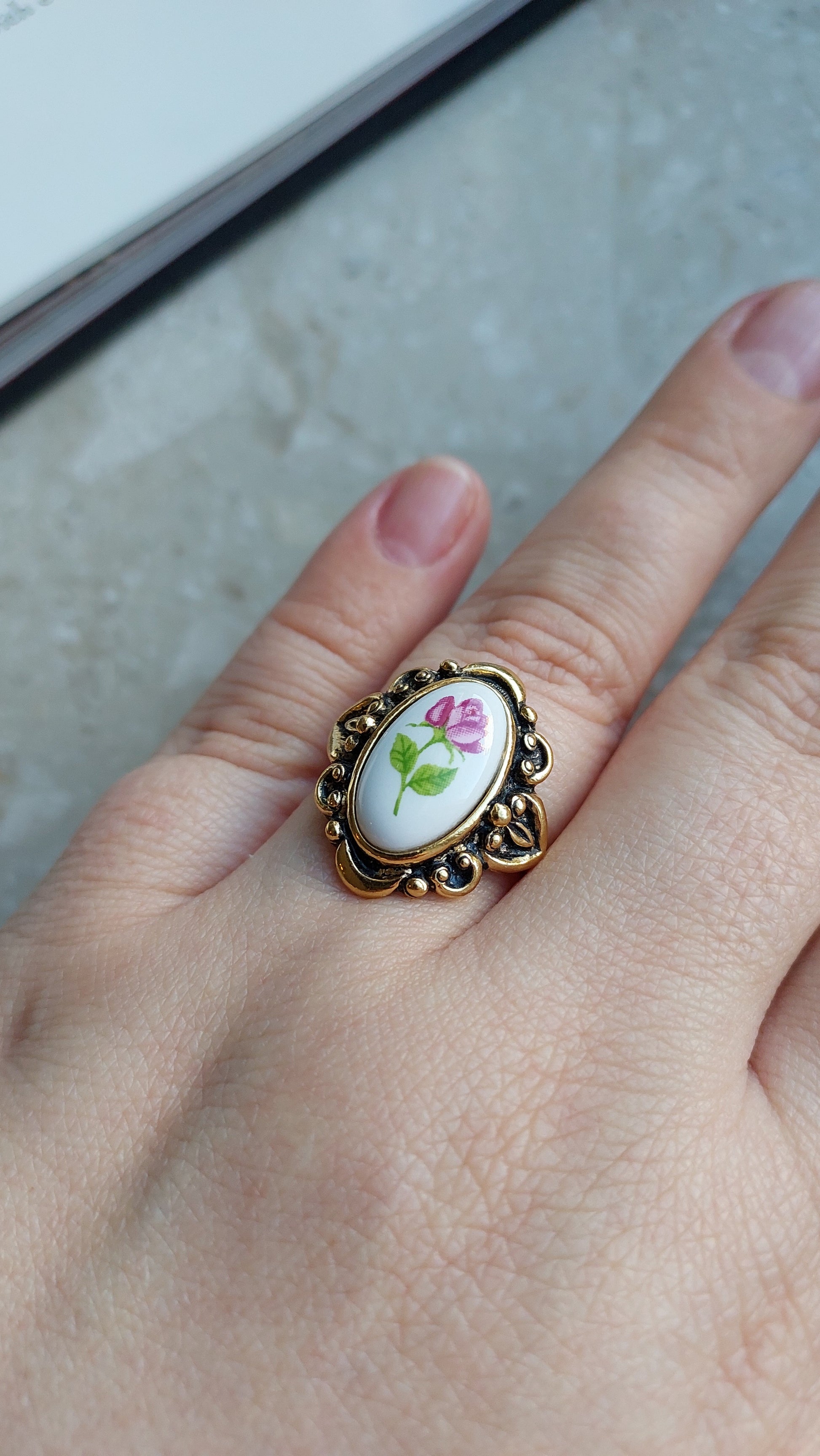 Uroczy pierścionek vintage Avon o delikatnym, romantycznym charakterze.