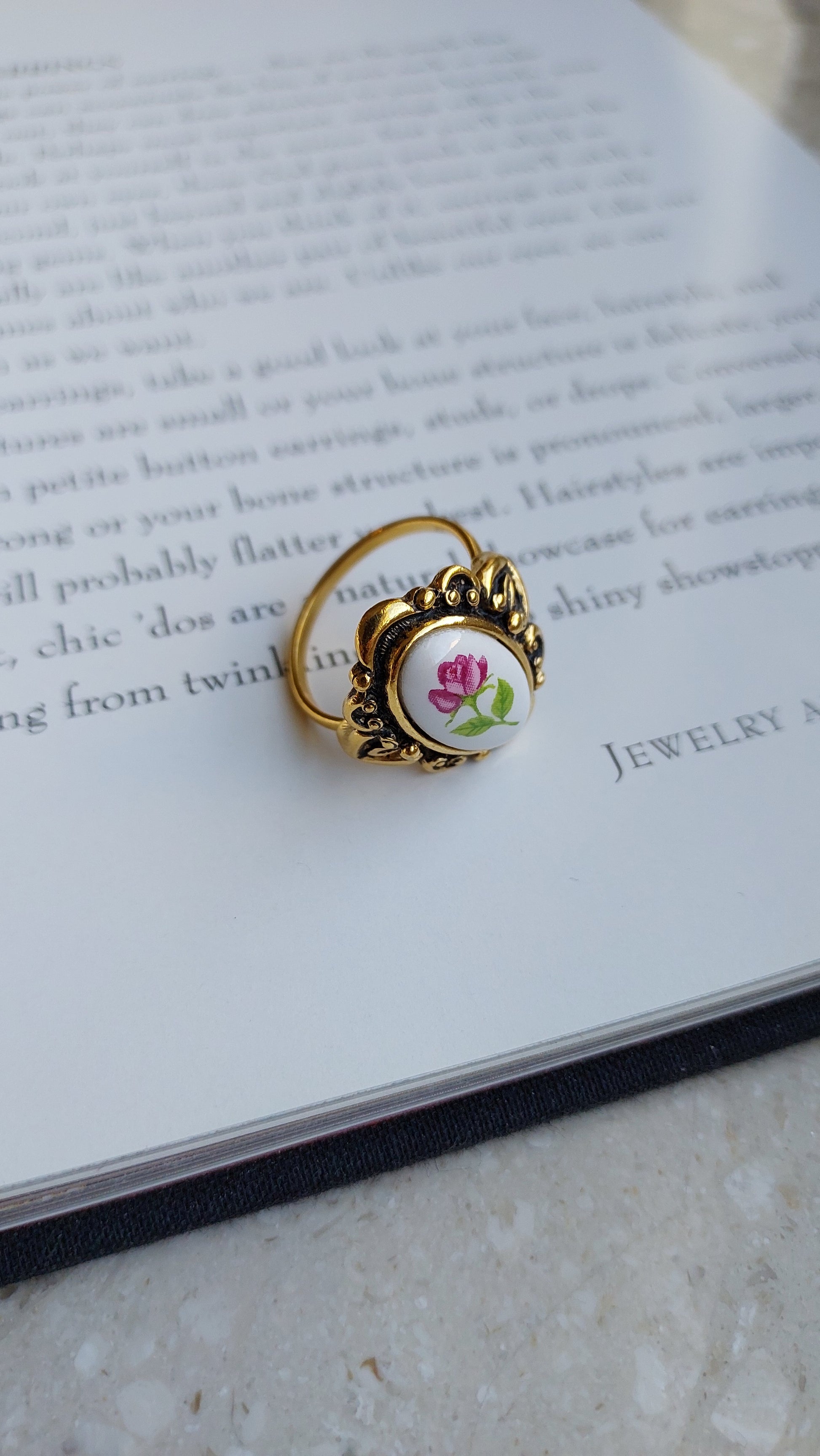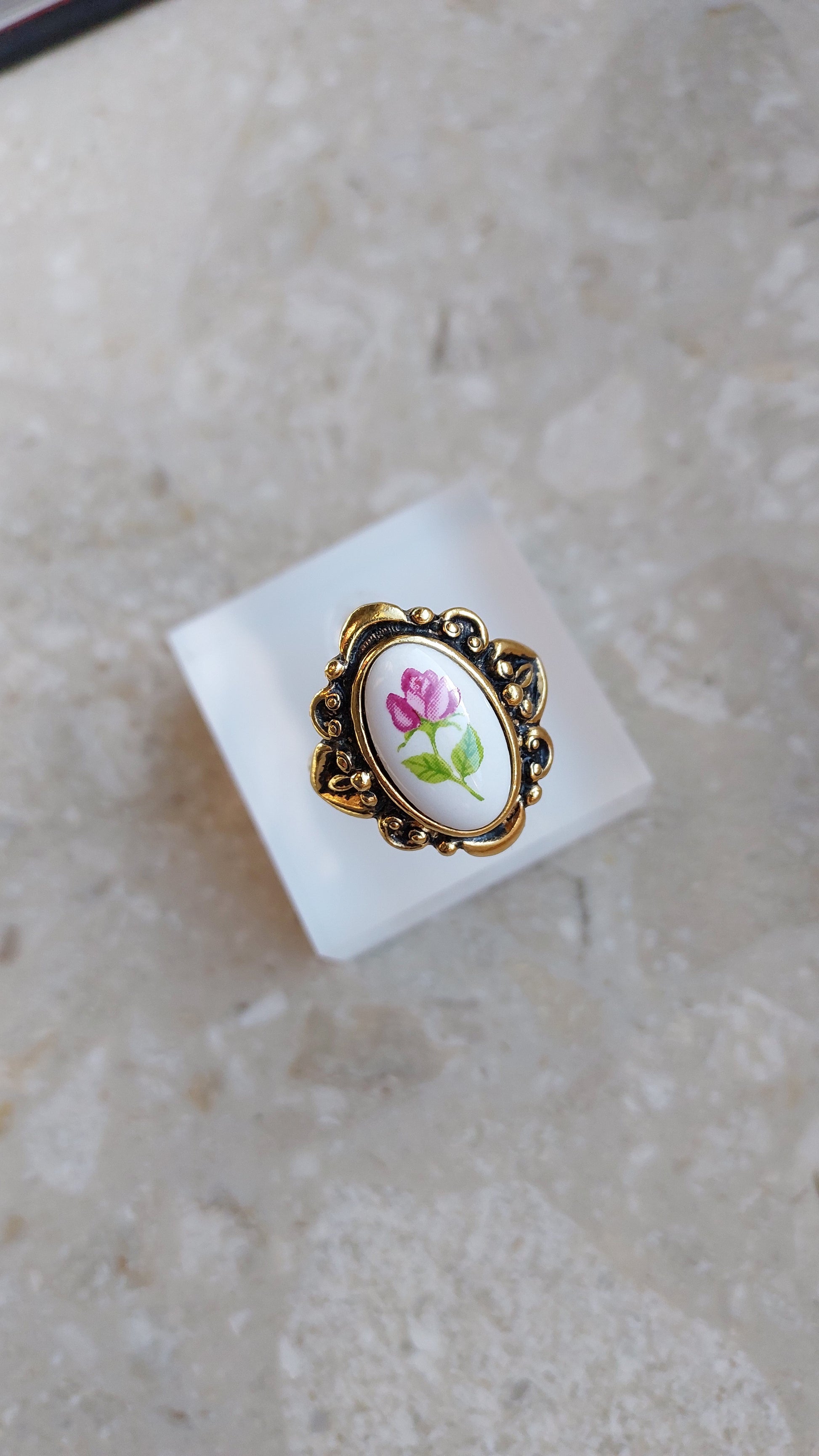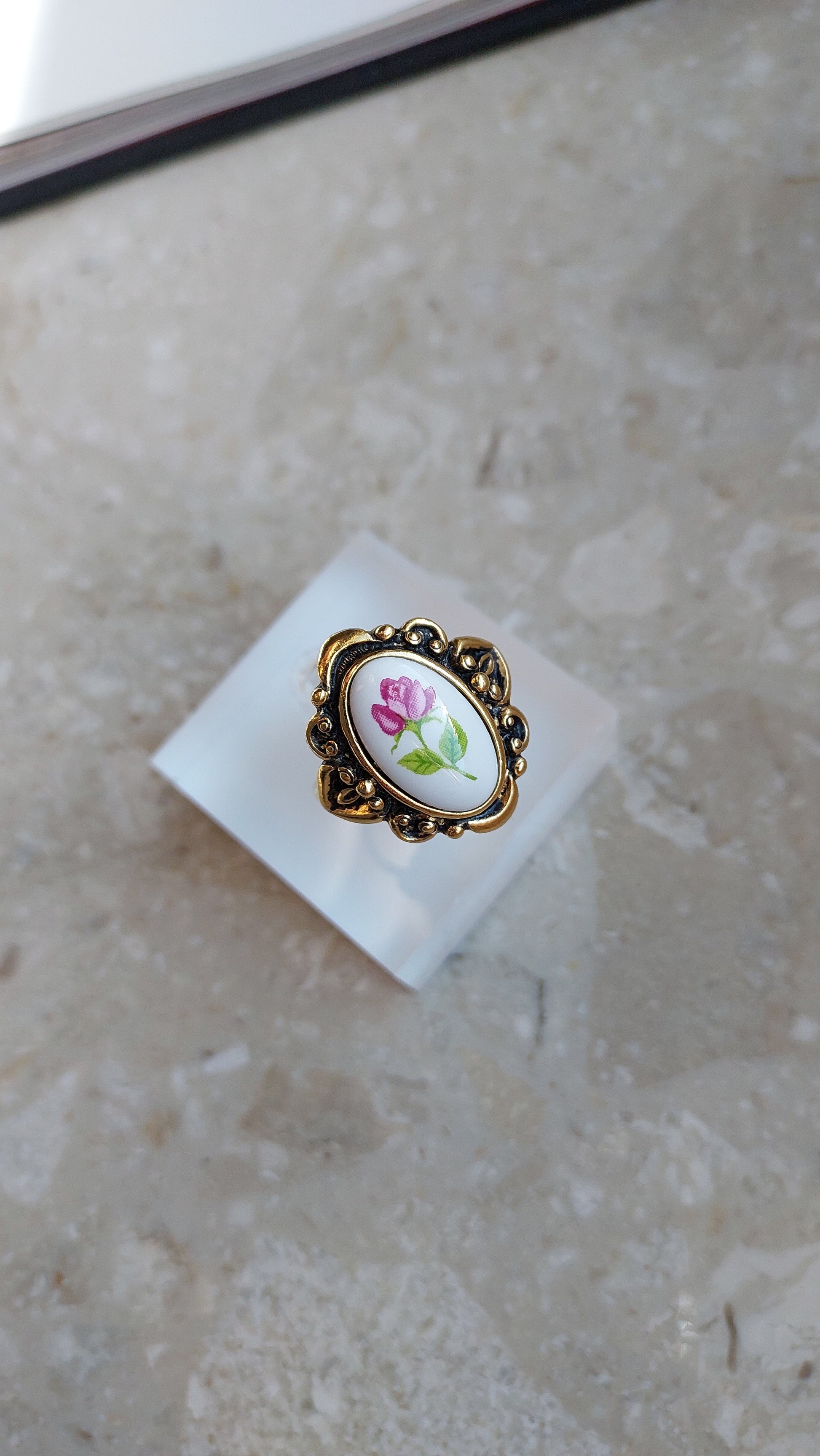Uroczy pierścionek vintage Avon o delikatnym, romantycznym charakterze.
