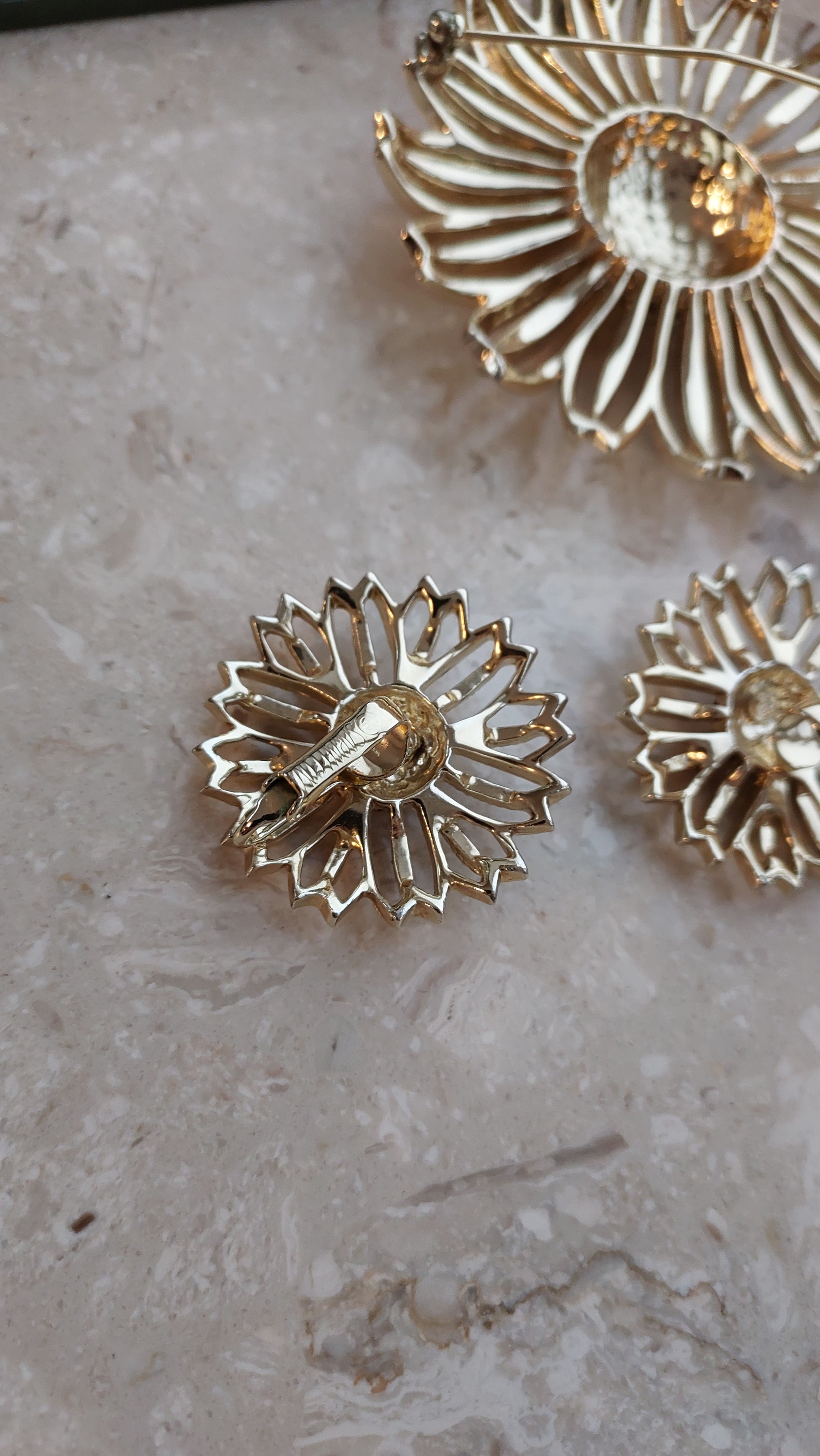 Zestaw Sarah Coventry w formie złocistych margaretek.